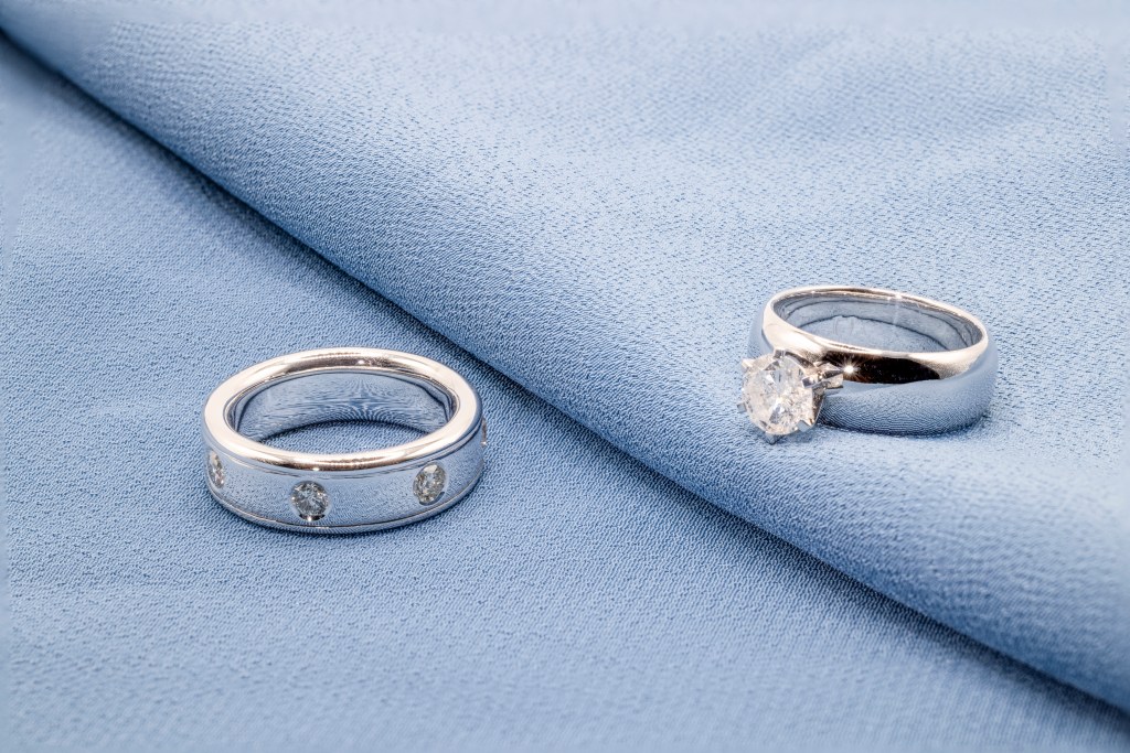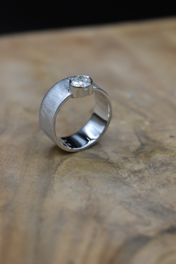 Vanaf €1.780 heb je een bredere ring die tegen een stootje kan. Ook een mooie edelsteen naar keuze mag niet ontbreken.