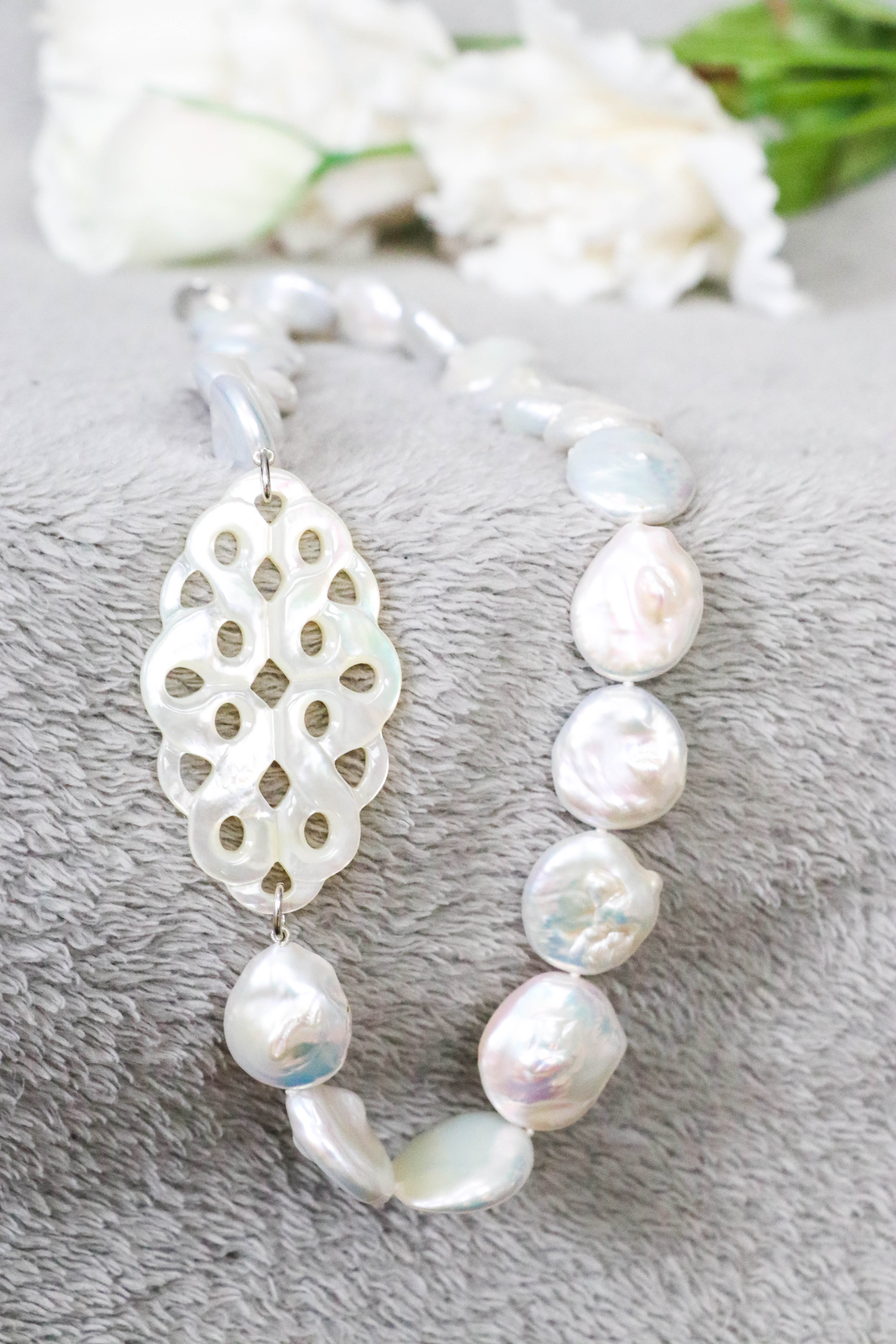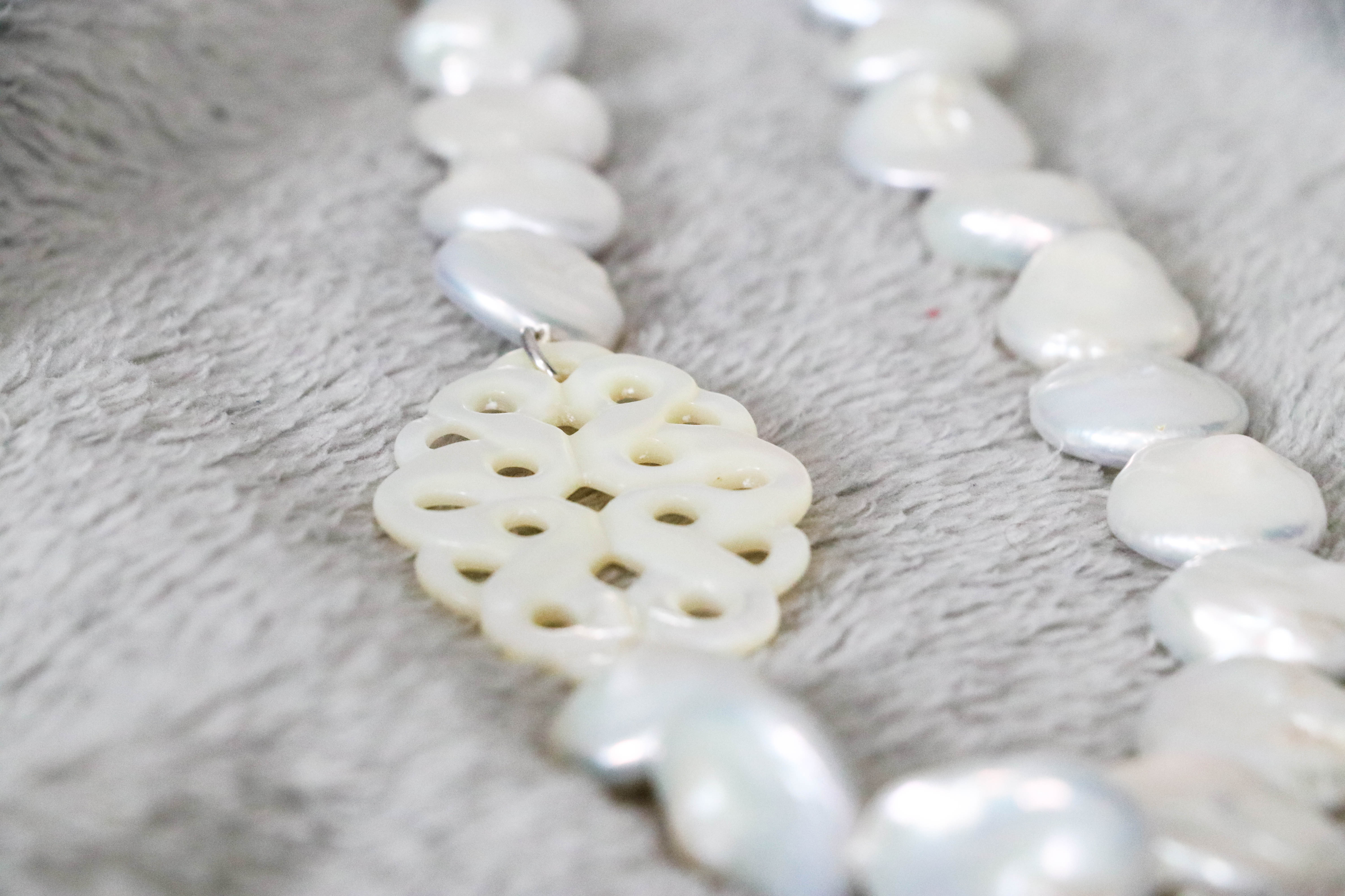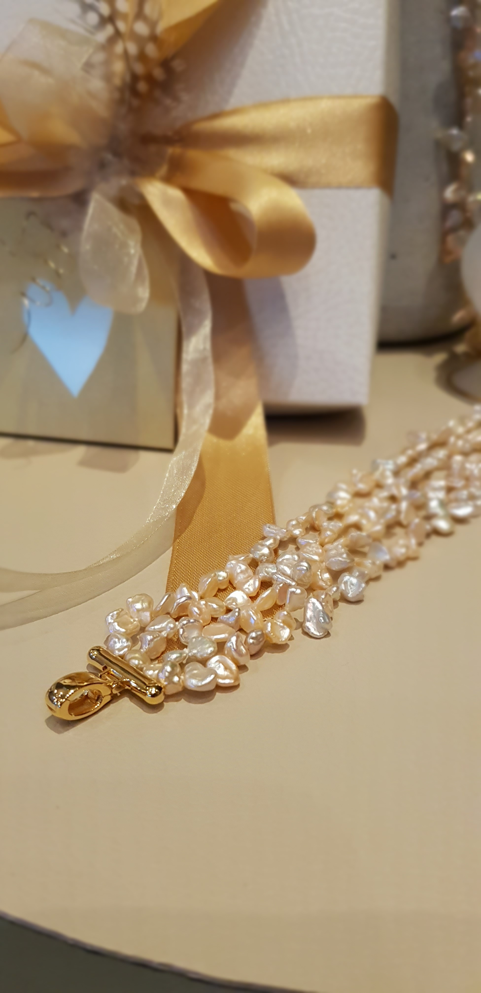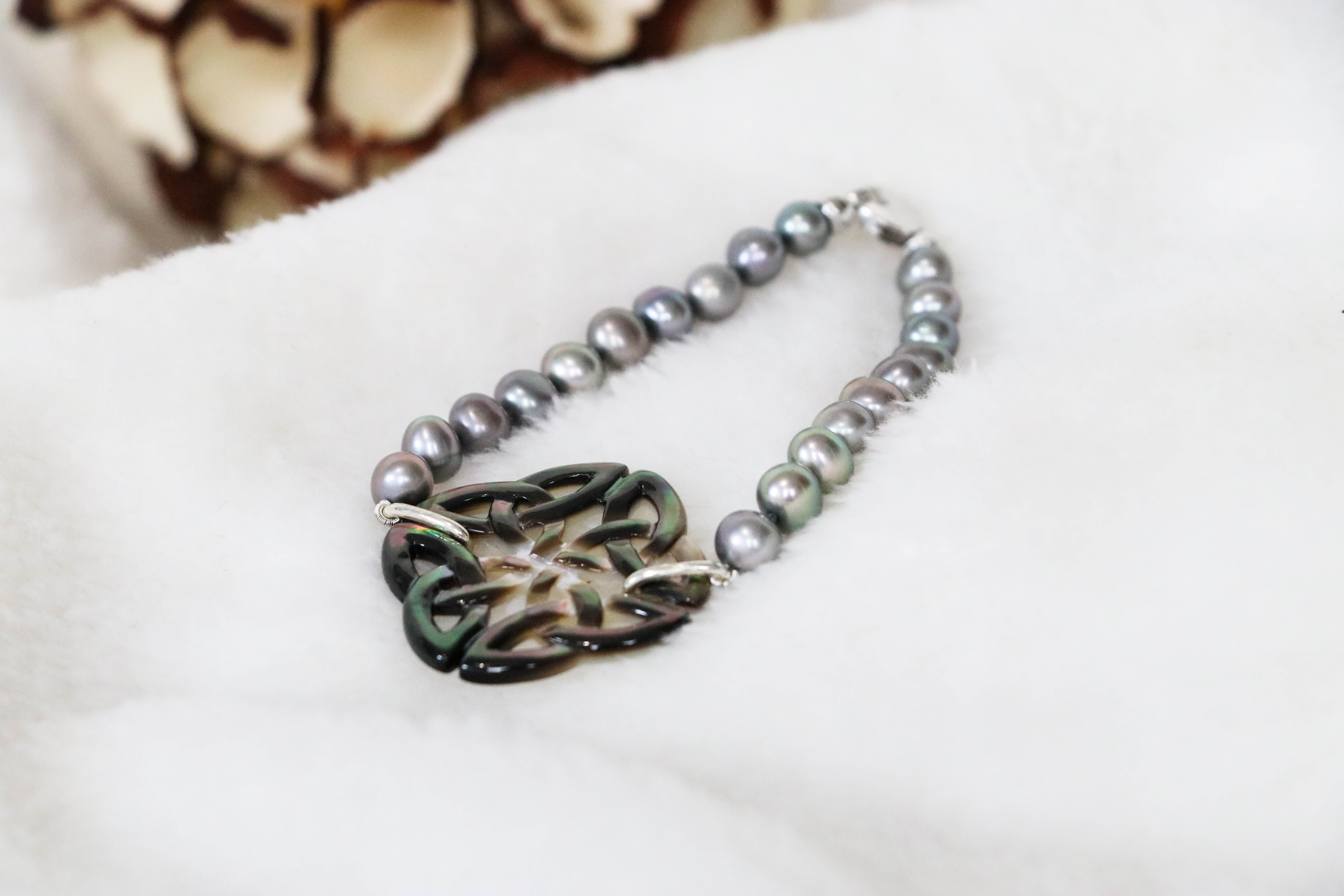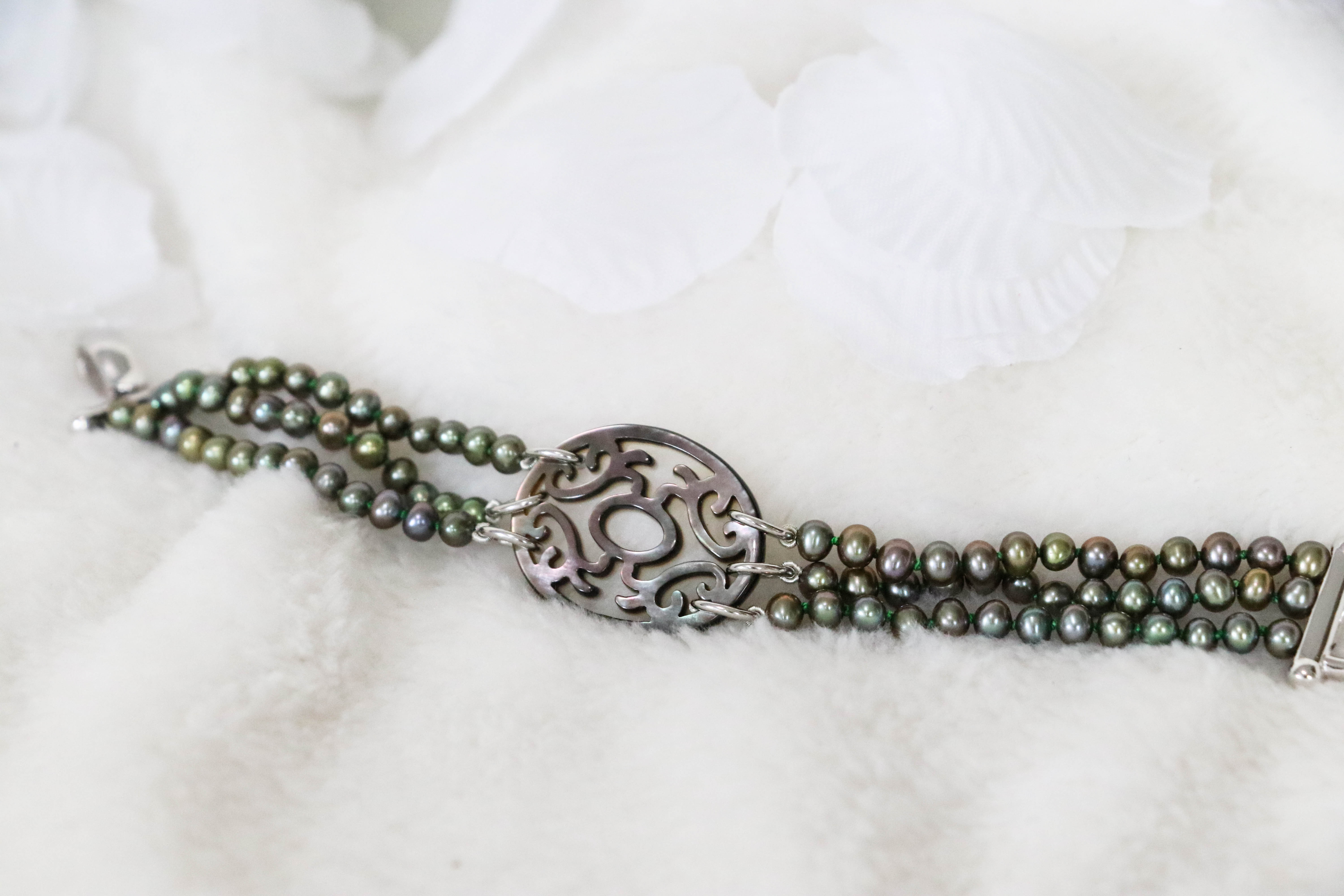 Behandel parels en parelmoer dus steeds met zachtheid, breng deze nooit in contact met chemische producten (waaronder ook parfum) en reinig indien nodig enkel met water ( niet boven temperatuur van 20 graden) jouw parelmoer zal langer zijn glans behouden met de juiste zorg.
